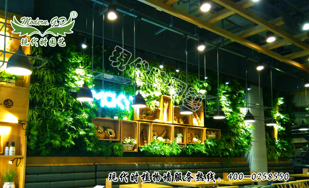 圍繞全國連鎖米旗蛋糕店而設(shè)計的綠色環(huán)保植物墻,采取工藝為我公司自主研發(fā)生產(chǎn)的種植箱模塊式植物墻所施工,安裝簡單快速且有安全及成活率保障。所安裝墻面為圓柱形墻面,采用主色系兩種分別為綠色,共三種植物分別為:綠蘿、金邊吊蘭、袖珍椰子。整體效果美觀整潔,及凈化空氣體現(xiàn)蛋糕店的環(huán)保理念又達(dá)到很好的墻面裝飾效果